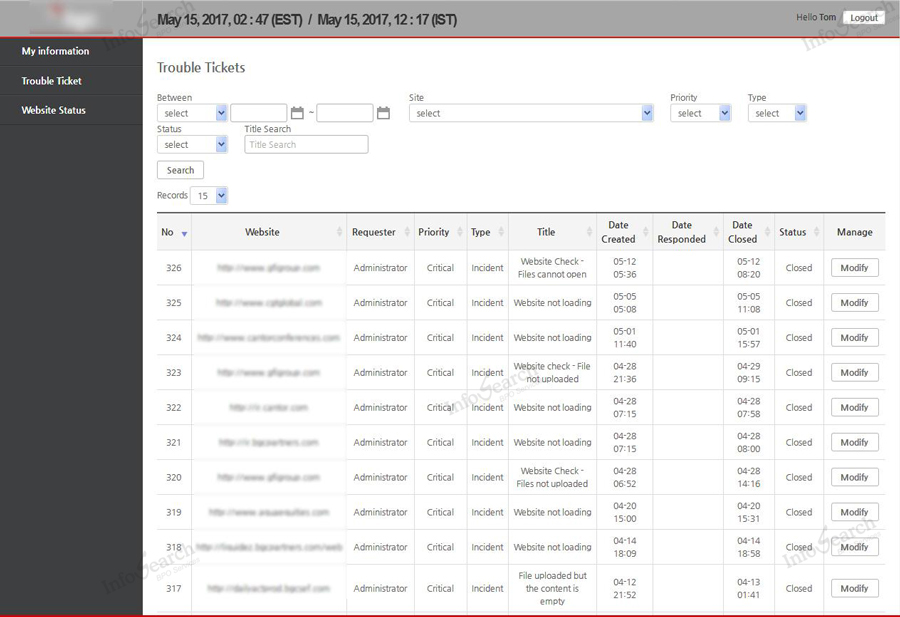 There are around 45 websites hosted by the client for various business activities and these are hosted in 3 different servers. The websites are required to be operational and available for the maximum time and it requires 24x7 monitoring. The real challenge is to monitor all the websites for uptime and monitoring them manually is practically not possible. The other challenge is to contact the respective hosting company to sort out the issue. It’s also required to ensure daily updates on shares are getting uploaded at a stipulated time every day. If not, it should be notified to the concerned person for further action.